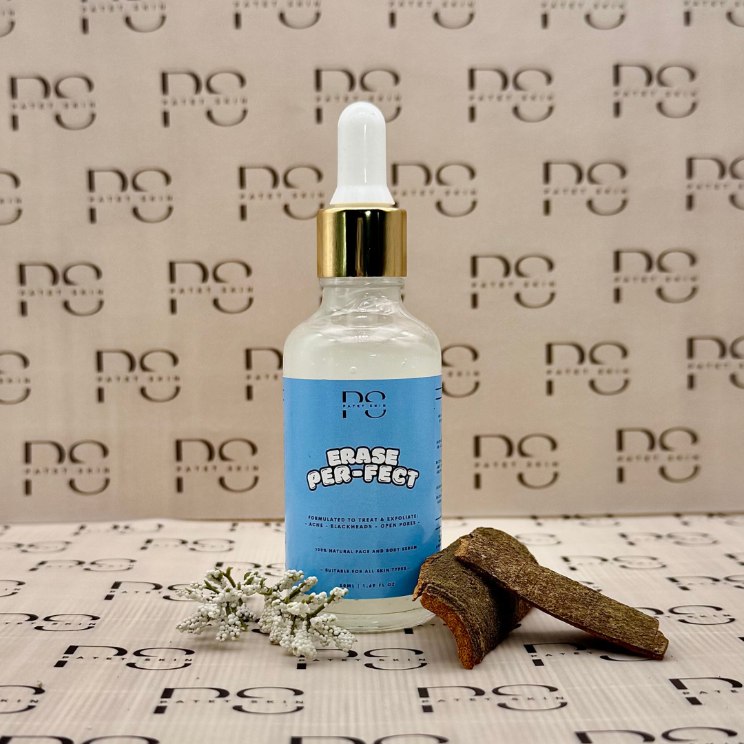 Transform your skin with Erase & Per-fect Face & Body Serum! Treat, exfoliate, and clear acne, blackheads, and open pores with 100% natural ingredients. Use as a spot treatment or all over for a flawless complexion. Feel confident and radiant with this powerful serum!